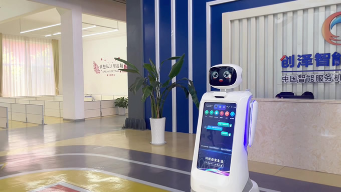 創澤智能消毒機器人和智能大屏機器人等多款機器人亮相蘭洽會,彰顯了創澤AI技術實力與場景深耕能力