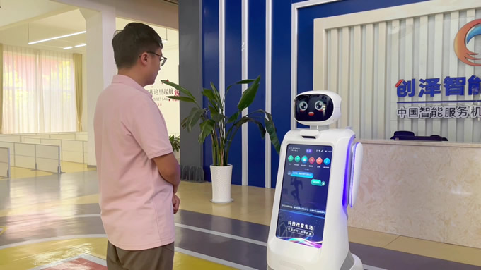創(chuàng)澤智能消毒機器人和智能大屏機器人等多款機器人亮相蘭洽會,彰顯了創(chuàng)澤AI技術(shù)實力與場景深耕能力