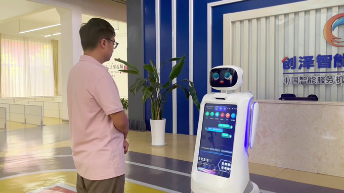 創澤智能消毒機器人和智能大屏機器人等多款機器人亮相蘭洽會,彰顯了創澤AI技術實力與場景深耕能力