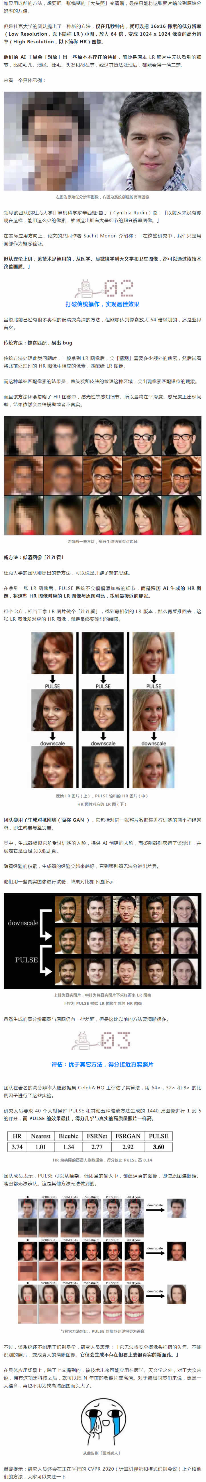 杜克大學的研究人員提出了一種 AI 算法,稱之為 PULSE(Photo Upsampling via Latent Space Exploration,通過潛在空間探索的照片上采樣)。