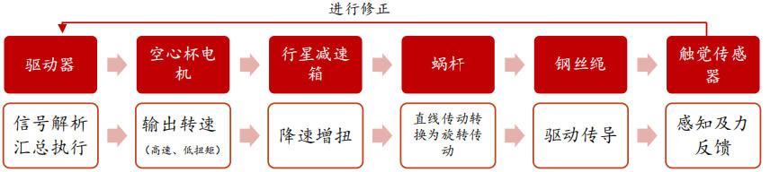 旋轉執行器分布于肩部、手部等多自由度關節,作用是將某物旋轉到一定角度完成旋轉運動;驅動關節完成旋轉動作,減速器為核心部件