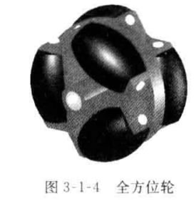 全方位輪種類很多,本節(jié)以圖3-1-4中所示的全方 位輪為例進(jìn)行討論,它的組成是在輪轂的外緣上設(shè)置有 可繞自己的軸旋轉(zhuǎn)的輥子,且均勻分布于輪轂周圍,這 些輥子軸線(E) 和輪轂軸線(S,) 的夾角a 為90°。該麥 卡納姆輪由雙排自由滾動的輥子組成,使得輪子在地面 滾動時形成連續(xù)的接觸點。而在運動時輪轂是驅(qū)動機(jī) 構(gòu),輥子是從動機(jī)構(gòu),因此在本節(jié)中主動輪由圖3-1-5 所示車輪輪轂與邊沿輥子組成,從動輪為車輪輥子,主 動輪、從動輪與地面接觸點均為輥子與地面的接觸點。
