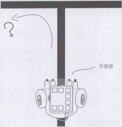 機(jī)器人已經(jīng)可以用2個(gè)或4個(gè)傳感器,又快又穩(wěn)定地進(jìn)行 巡線運(yùn)動(dòng)了吧?不過(guò),如果機(jī)器人行走的路線上除了直線、曲線還有各種路口又該怎么辦 呢?這次的實(shí)驗(yàn)就來(lái)解決這個(gè)問(wèn)題,先來(lái)看看圖9-5中這樣的丁字路口,機(jī)器人應(yīng)該采 用什么樣的策略才能通過(guò)。