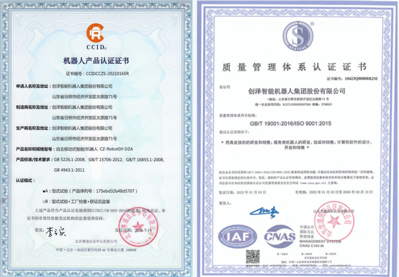創澤機器人是集研發、生產、銷售于一體的高新技術企業,榮獲很多榮譽資質。如
