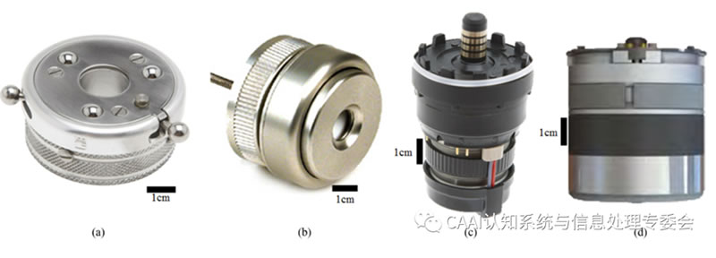 主動單自由度腕部通常在假肢和機器人應用中都能找到。在假肢L域,這些系統通常與EMG系統一起使用,使用戶能夠通過肌肉信號控制旋轉;顒邮滞罂梢允仟毩⒌膯卧傻郊偈种,或者集成到較大假手中的前臂中。與被動手腕類似,主動單自由度裝置也可分為旋轉器和屈肌。主動旋轉器是腕部假體中常見的動力裝置。獨立設備包括運動控制電動旋轉器和OB腕部旋轉器,如圖(c)所示,這兩種設備都是為與許多終端設備兼容而設計的,因而得到了相對廣泛的應用。OB-Michelangelo手和TBi-Limb Quantum都使用緊湊的旋轉器,即軸旋轉和俯臥旋轉[圖(d)],它們分別安裝在各自手的假體窩和下手掌中,主動屈肌也往往納入現有的機器人手或終端設備系統。