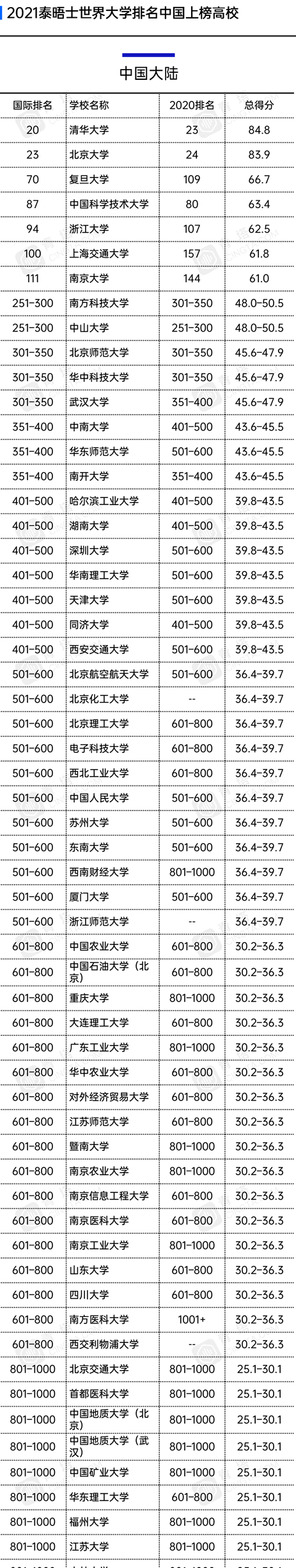 當前位置:首頁 > 政策 > 泰晤士大學 > 2021泰晤士世界大學排名,中國137所G校上榜