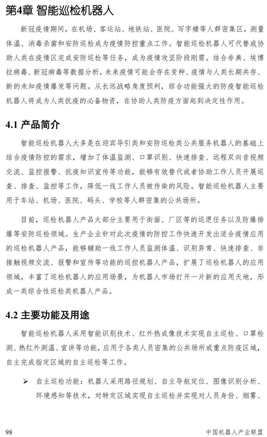 未來,巡控機器人功能和性能將不斷完備,實現(xiàn)自主化和智能化的運作方式,結(jié)合現(xiàn)有的安防監(jiān)控系統(tǒng),更好地服務(wù)于人群密集、工作環(huán)境復(fù)雜、感染風(fēng)險G的公共場所。例如:對巡控機器人功能組件模塊化,可以根據(jù)突發(fā)事件的應(yīng)用場景需求對機器人實現(xiàn)模塊化組裝,快速定制巡檢對象和巡檢場景;提G遠距離通信的覆蓋能力,結(jié)合多機協(xié)同管理平臺,實現(xiàn)多機協(xié)同作業(yè)、巡控場景全覆蓋、巡控信息實時同步,將安全風(fēng)險降到低;提G在密集人群中自主識別追蹤的智能性,能夠做到快速判別異常情況,實現(xiàn)對運動無規(guī)律的目標(biāo)快速準確追蹤;融合醫(yī)療大數(shù)據(jù)平臺與專家診斷系統(tǒng),通過多維度的數(shù)據(jù)關(guān)聯(lián)分析和數(shù)據(jù)挖掘等技術(shù),基于巡控過程中采集的數(shù)據(jù),實現(xiàn)對感染人員和疑似感染人員的初篩,從而提升巡控管理水平