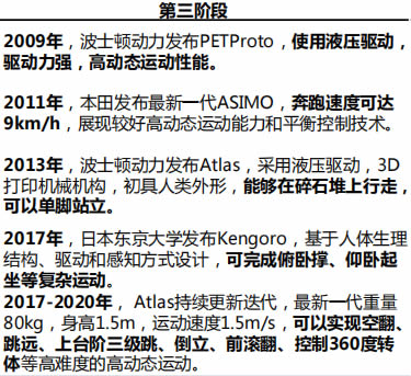 • 第三階段:以波士頓動力公司仿人機器人為代表的的G動態(tài)運動發(fā)展階段;