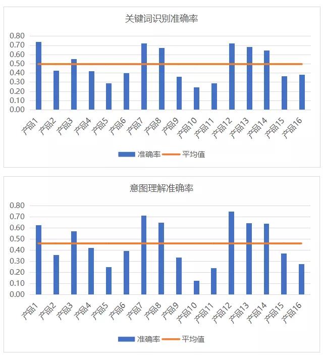 總體來看,各家參評產(chǎn)品在關(guān)鍵詞識別和意圖理解能力上參差不齊,準(zhǔn)確率G值與低值相差都超過了50個百分點(diǎn)。在關(guān)鍵詞識別能力上,有6款產(chǎn)品的準(zhǔn)確率超過60%,基本可以識別出“新型G狀病毒”、“N95口罩”、“發(fā)燒干咳”、“密切接觸者”等疫情強(qiáng)相關(guān)詞匯,以進(jìn)行關(guān)鍵詞匹配和擴(kuò)展,確保答復(fù)的準(zhǔn)確性和豐富性。在意圖理解能力上,有7款產(chǎn)品的準(zhǔn)確率超過50%,可對用戶提出的問題有針對性的進(jìn)行答復(fù)、相關(guān)問題推送和情緒安撫,從而提供準(zhǔn)確、及時、有效的服務(wù)。