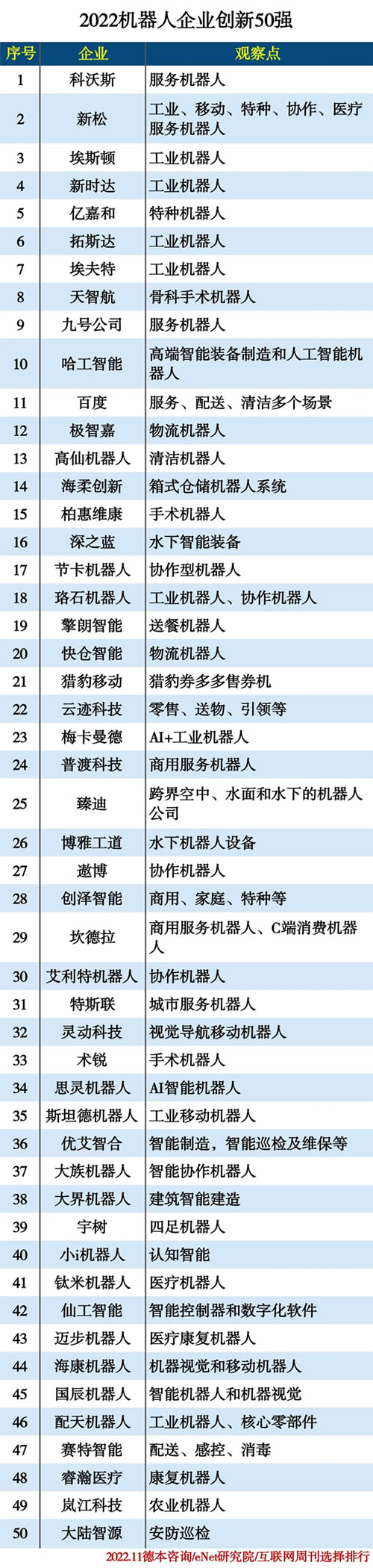 2022機(jī)器人企業(yè)創(chuàng)新50強(qiáng)