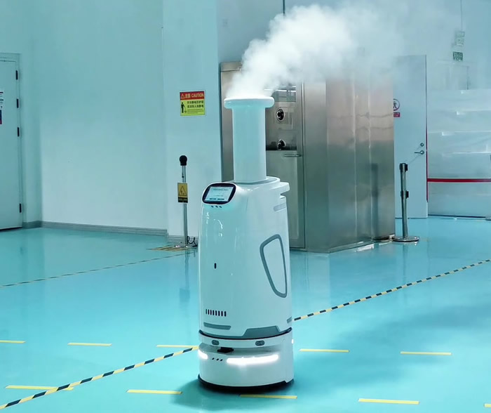 在安全方面,消毒機器人能夠有效的降低工作人員感染風險,工作者只需進行初始的設備設置和后續(xù)添加消毒劑等標準動作,即可無需再進行操作。