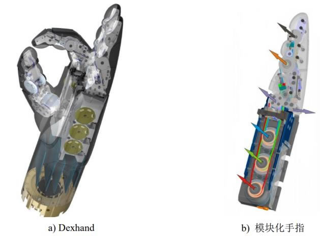 相比驅動器外置,驅動器內置式靈巧手各關節具有較好的剛性,更利于傳感器的直接測量, 且模塊化設計利于更換維護。但是驅動器的內置分布讓通信和控制難度加大,手指尺寸及 靈巧手整手尺寸較大,關節靈活度下降。